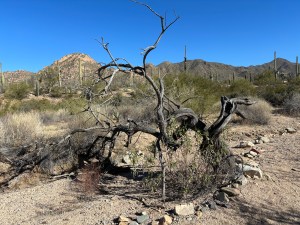 When we arrived at the Saguaro National Park, I was stuck by the sheer number of cacti. I caught another park ranger talk in the morning and met two women who were visiting the area from Lakeville, MN, where I used to teach – such a small world. The ranger was also a retiree from, you guessed it, Minnesota. We strolled around the garden area where he pointed out an abundant amount of information about the Saguaro cacti and other plant and animal life in the park. Did you know that the Saguaro cactus is about 60 years old before it starts to grow its first limb and that they are also self-healing?